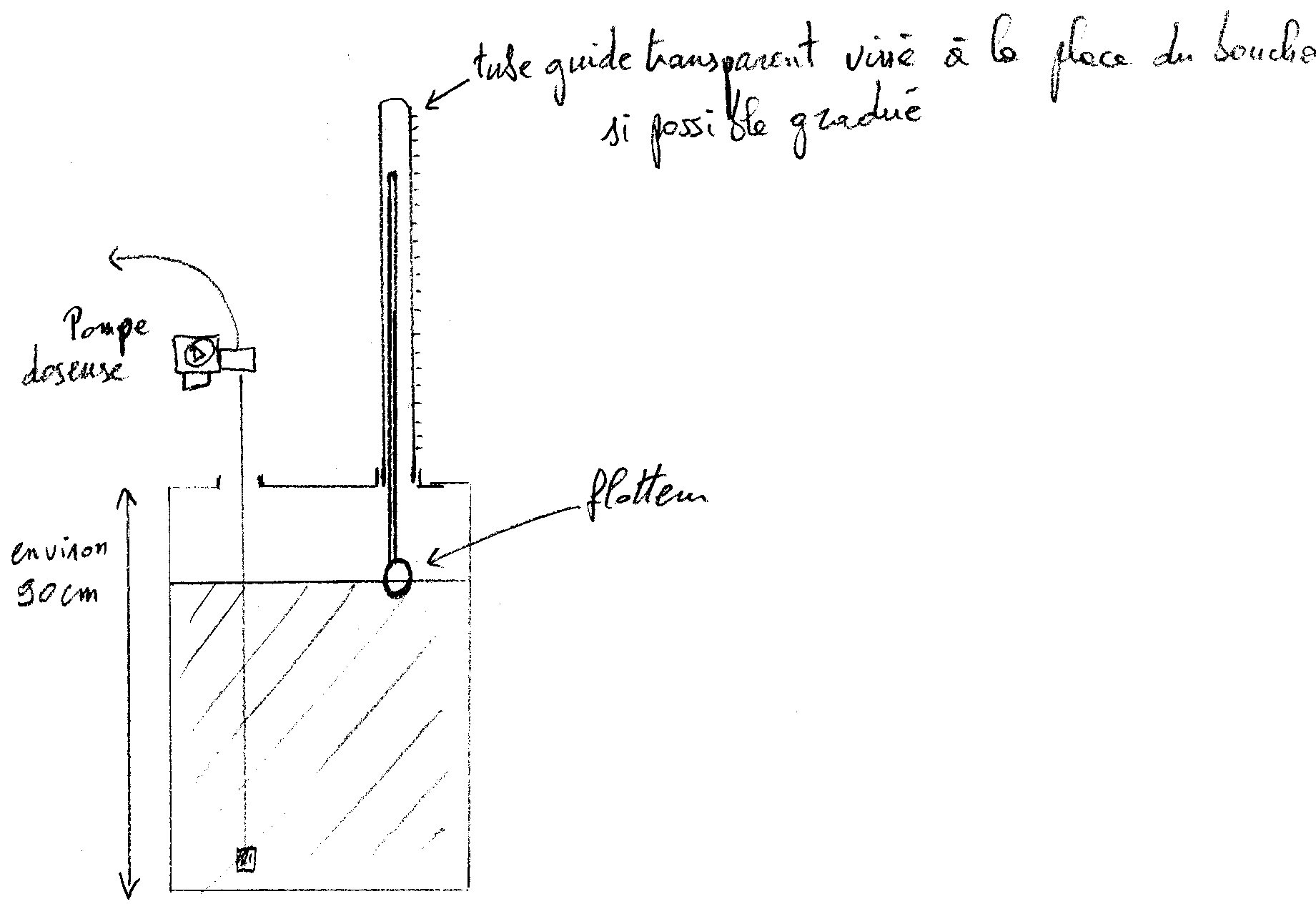 L'idéal serait une tige avec flotteur guidée à l'extérieur dans un tube creux sur une réglette.