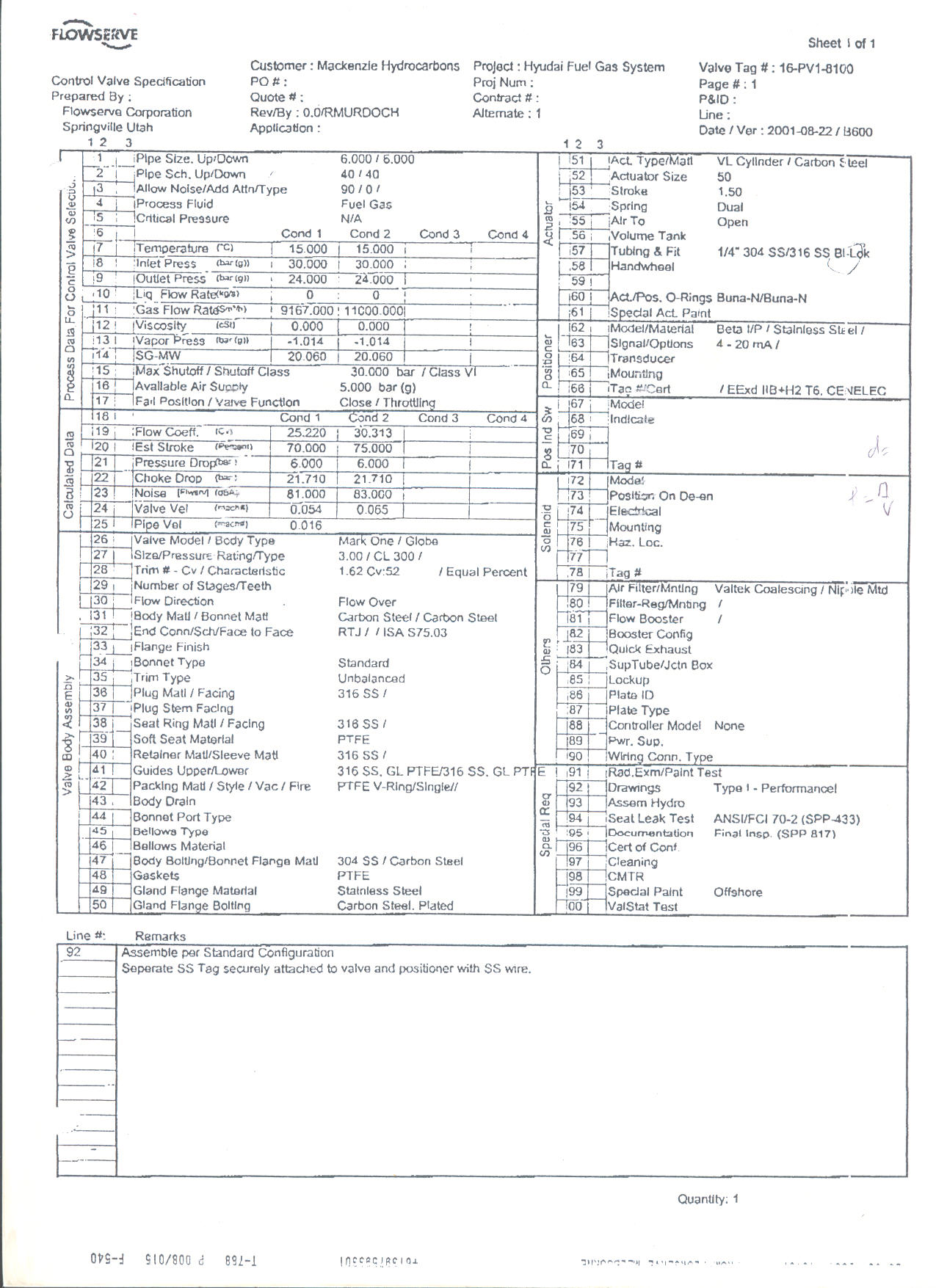 J’ai commencé par recalculer le CV de la vanne pour m’assurer de mes donnes process