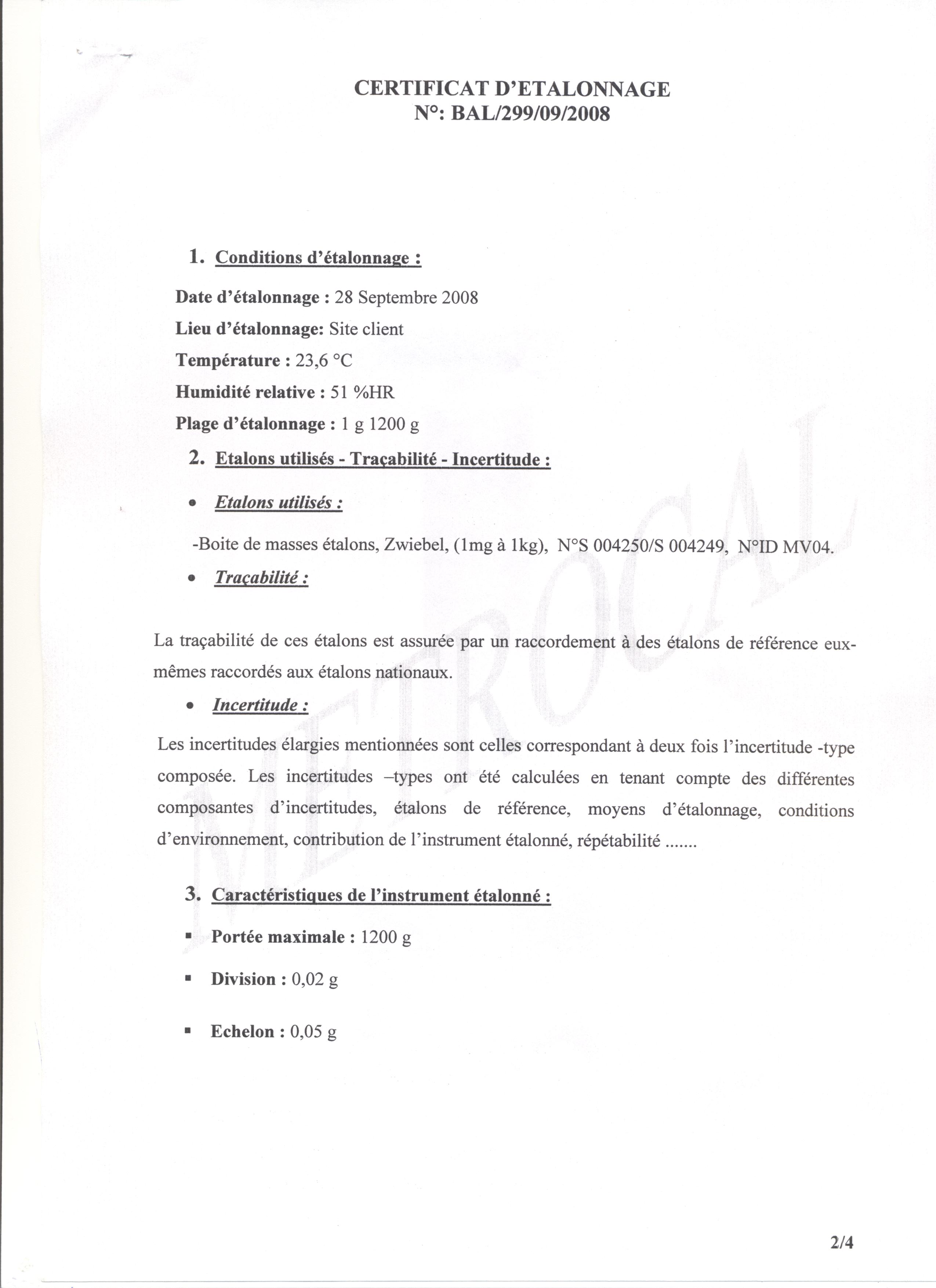 *et dernièrement est ce je peut voir les exigences de la norme concernant les techniques d'étalonnage des balances électronique non automatique et les information qui doivent êtres délivrées dans les certificats d'étalonnage?