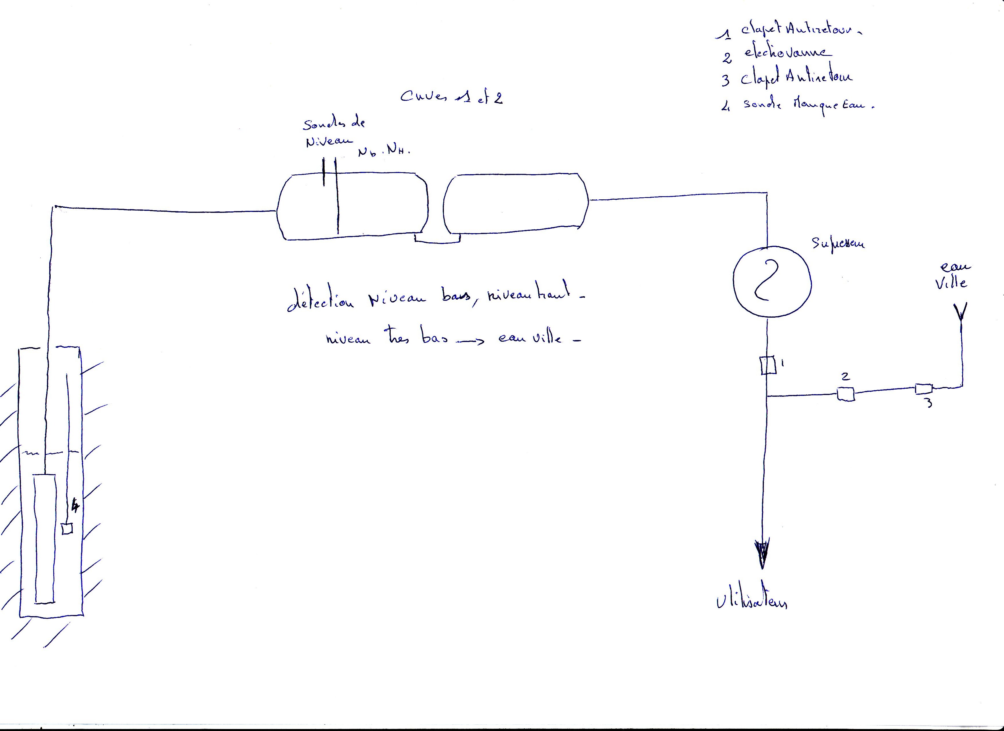 J'ai un forage qui envoie dans une cuve, et de cette cuve, un surpresseur envoie l'eau dans une maison.
